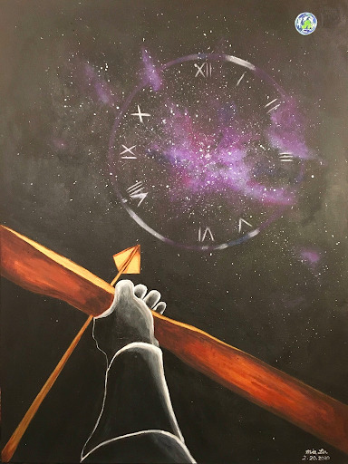 Mia was painting a picture with an hourglass, intending to emphasize the importance of time. But in the middle of it, God moved her to add another element to the painting and then told Mia that all time is in His hands.